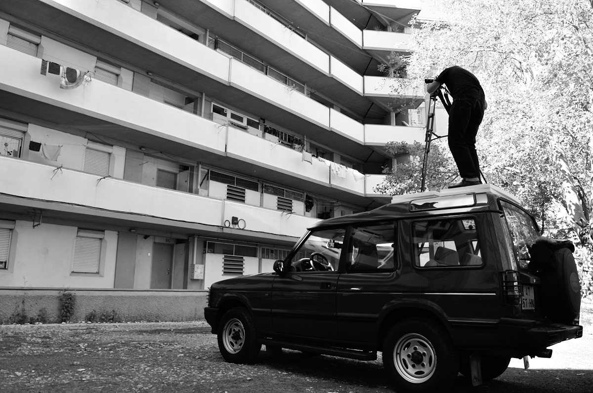 "Ruptura Silenciosa - Intersecções entre a Arquitectura e o Cinema: Portugal 1960-1974" (Faculdade de Arquitectura da Universidade do Porto, 2010-2013) foi um projecto de investigação que ambicionava mostrar em curtas-metragens, ficções em vez de documentários, obras arquitectónicas relevantes daquele período. Integrada neste projecto, a equipa da Circo de Ideias escolheu o Bloco dos Olivais Sul, em Lisboa, projectado em 1960 por Vítor Figueiredo e Vasco Lobo, o primeiro um dos mais, se não o mais, notável autor de habitação de baixo custo em Portugal. Durante as filmagens, algumas fotos tentaram registar o trabalho (e o prazer) da produção e rodagem do filme, tentando captar a arquitectura onde estas acções e sentimentos se centravam e iam tendo lugar. |